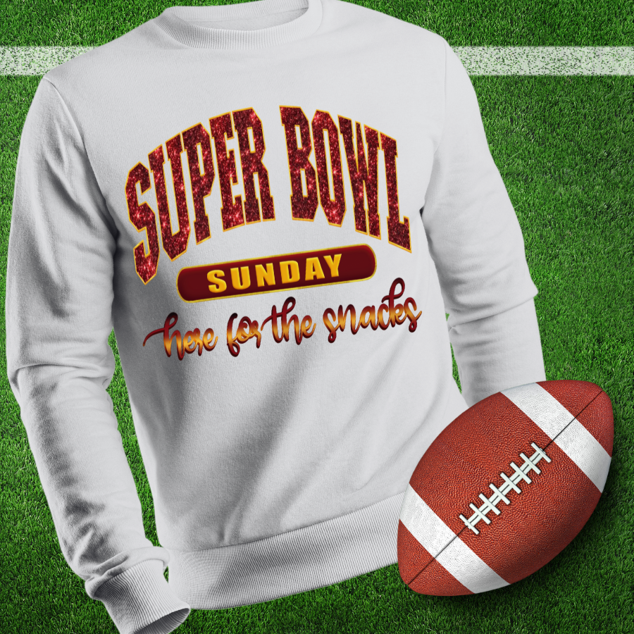 Get ready to sparkle and shine on Super Bowl Sunday with our dazzling shirt! Featuring a faux glitter and embroidery effect, this shirt will make you the star of any Super Bowl party. Perfect for fans who want to stand out and have a bit of fun (and snacks) on game day!